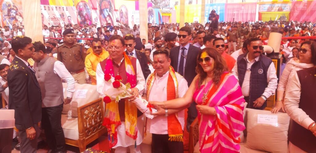 महापौर दीपक बाली द्वारा निजी तौर पर आयोजित इस “रंगोत्सव” कार्यक्रम में उत्तराखंड की लोक-संस्कृति को आगे बढ़ाते आ रहे लोक गायक इंदर आर्या, गोविंद दिगारी, खुशी जोशी, पूर्वांचल के गायक आलोक कुमार के अतिरिक्त फूलों की होली के लिए विख्यात ब्रज के रास कलाकारों की लोक परंपराओं पर आधारित होली गीतों एवं सांस्कृतिक प्रस्तुतियों ने समा बांध दिया। मुख्य चौराहे से लेकर नगर निगम प्रांगण स्थित कार्यक्रम आयोजन स्थल तक विविध सांस्कृतिक रंगों से सजे इस आयोजन में पारंपरिक लोकधुनों पर मुख्यमंत्री श्री धामी भी ब्रज के रास कलाकारों और होल्यारों के साथ झूमते नजर आए, जिससे कार्यक्रम में उत्साह और आत्मीयता का वातावरण और भी प्रफुल्लित हो उठा।