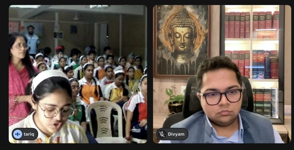 कार्यक्रम में कक्षा 9 से 12 तक के विद्यार्थियों ने उत्साहपूर्वक भाग लिया और विभिन्न विषयों पर अपने प्रश्न प्रस्तुत किए। विशेष रूप से कॉर्पोरेट लॉ, पेटेंट एवं कॉपीराइट से संबंधित जिज्ञासाओं को विद्यार्थियों ने प्रमुखता से रखा, जिनका समाधान श्री अग्रवाल ने सरल एवं प्रभावी ढंग से किया। इस अवसर पर आईआईएम डीआईसी से जुड़े श्री संजय जी की गरिमामयी वर्चुअल उपस्थिति भी रही। उन्होंने विद्यार्थियों का उत्साहवर्धन करते हुए ऐसे सत्रों की उपयोगिता पर प्रकाश डाला। पूरा सत्र अत्यंत रोचक, प्रेरणादायक एवं ज्ञानवर्धक रहा, जिससे विद्यार्थियों को न केवल विधि क्षेत्र की गहन जानकारी प्राप्त हुई, बल्कि उनके भीतर इस क्षेत्र के प्रति रुचि एवं जागरूकता भी बढ़ी।